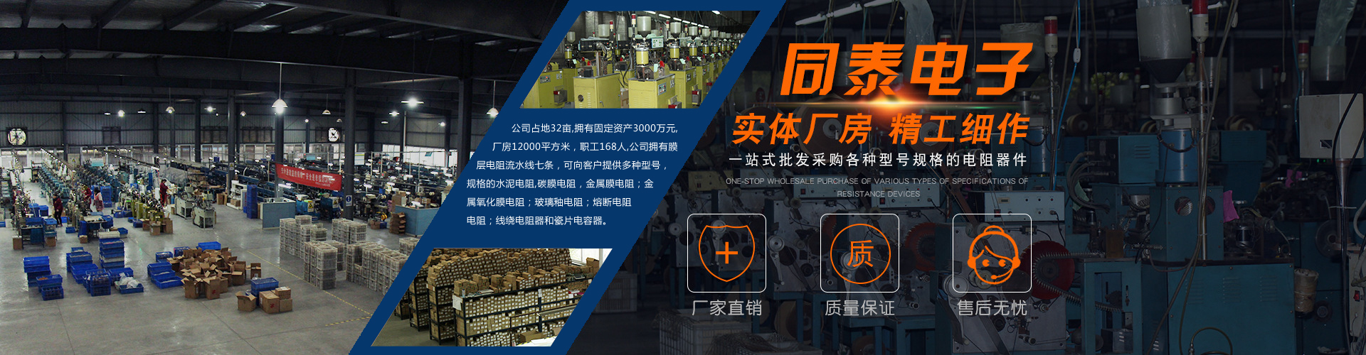公司占地32畝,擁有固定資產(chǎn)3000萬(wàn)元,廠房12000平方米,職工168人,公司擁有膜層電阻流水線(xiàn)七條,可向客戶(hù)提供多種型號(hào),規(guī)格的水泥電阻,碳膜電阻,金屬膜電阻;金屬氧化膜電阻;玻璃釉電阻;熔斷電阻電阻;線(xiàn)繞電阻器和瓷片電容器。年產(chǎn)量20億只。公司先后從德國(guó)。臺(tái)灣等地引進(jìn)設(shè)備和技術(shù),不斷創(chuàng)新。開(kāi)發(fā)市場(chǎng)所需要的產(chǎn)品,積極開(kāi)拓國(guó)內(nèi)外市場(chǎng)。
